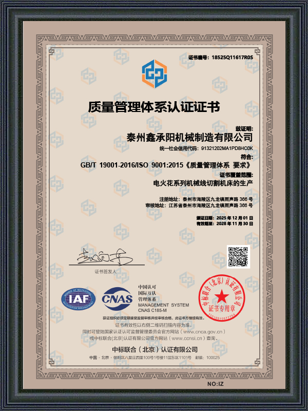 品質マネジメントシステム証明書